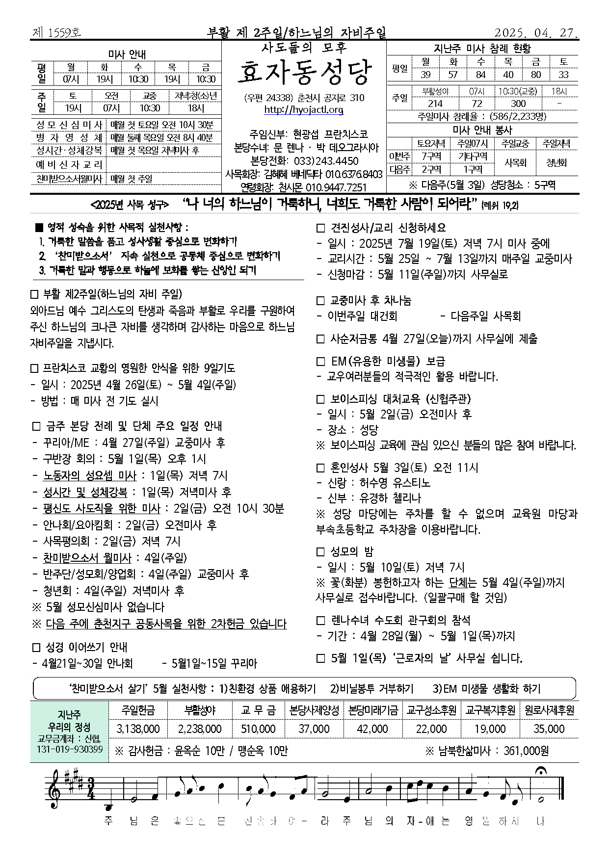 2025년 04월 27일 부활 제 2주일(하느님의 자비주일)
