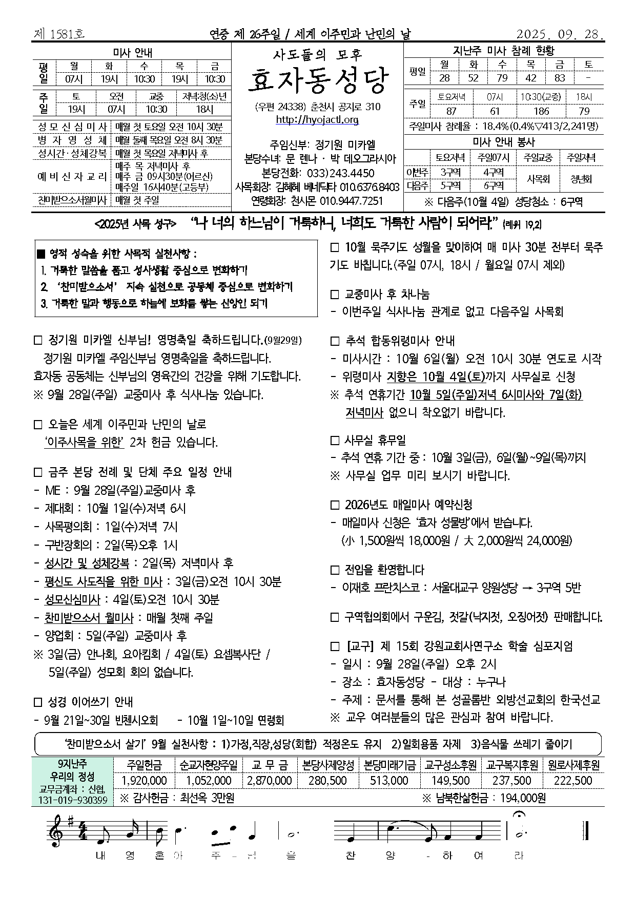 2025년 09월 28일 연중 제 26주일(세계 이주민과 난민의 날)